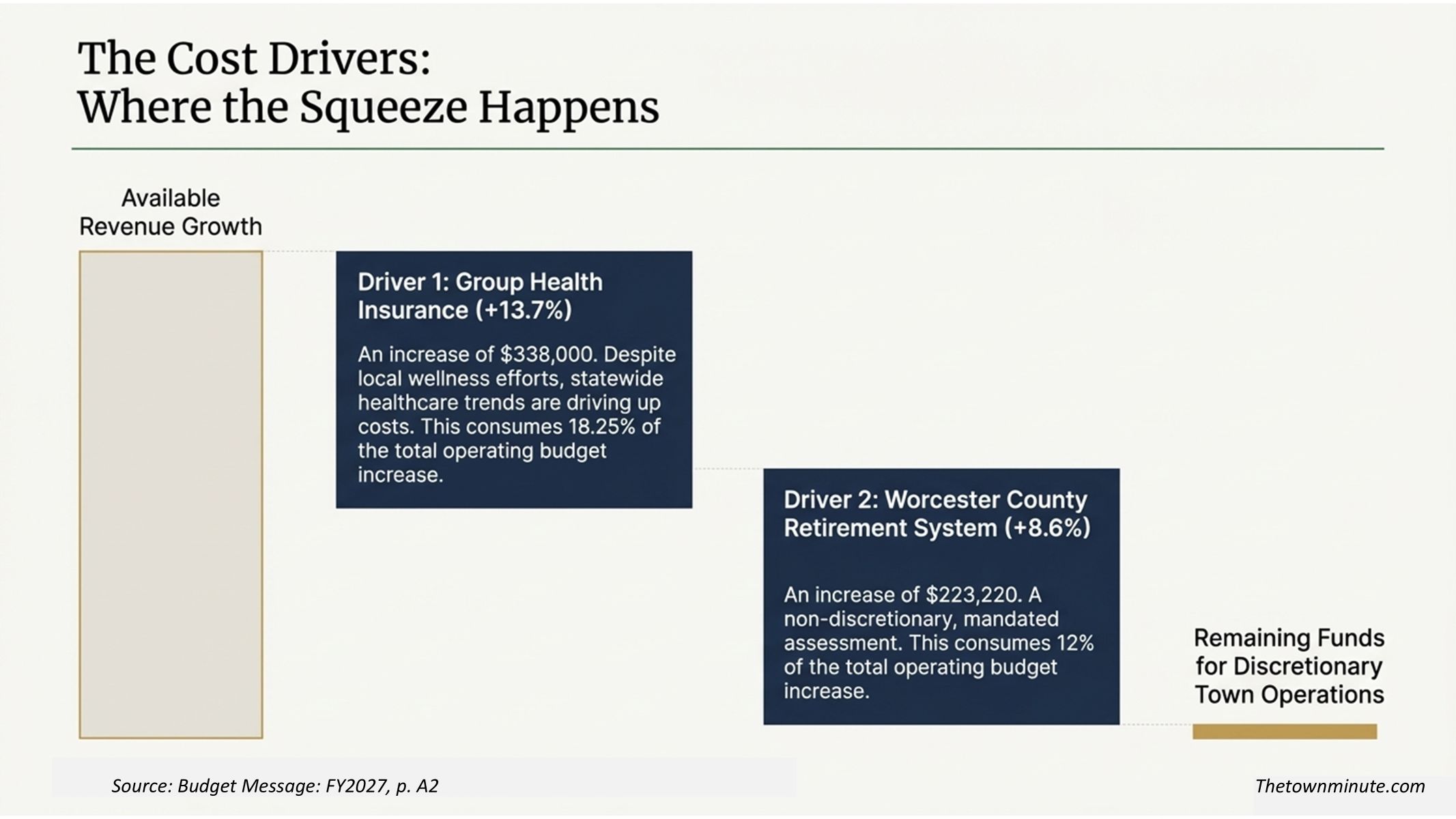 Two of those five, health insurance and the retirement assessment, are costs the town does not control.